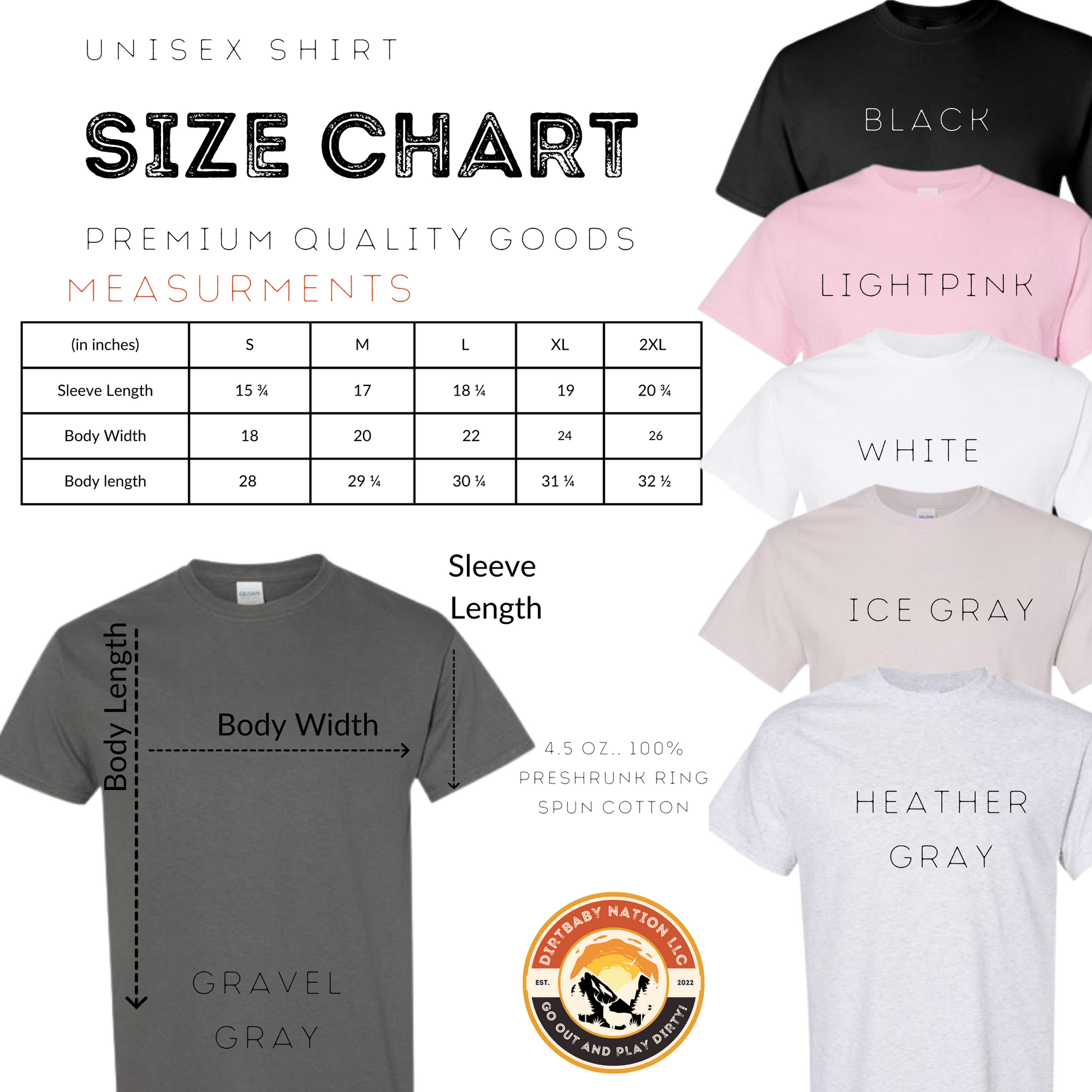 Outdoor-enthusiast, this shirt is for you! Living the mud life crisis, when we aren’t outdoors. Soft print, Unisex preshrunk cotton t-shirt, perfect for everyday. See the size chart for reference.